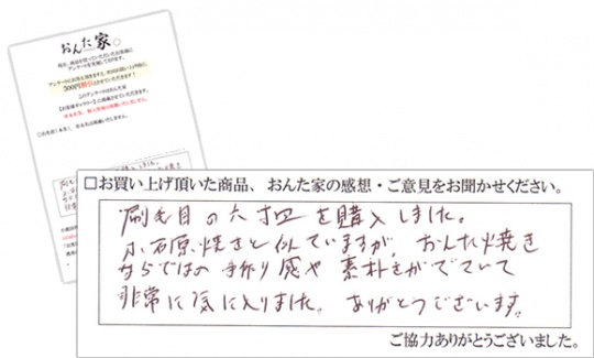 刷毛目の六寸皿を気に入っていただき、スタッフ一同大変嬉しい限りです。