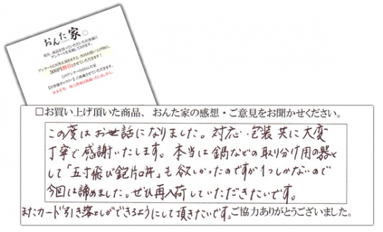 大変丁寧で感謝いたします。本当は鍋などの取り分け用の