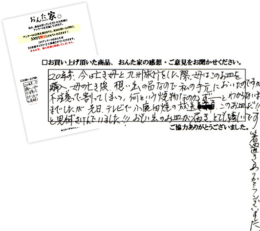 20年前、今は亡き母と九州旅行をした際、母はこのお皿を購入。