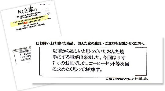 以前から欲しいと思っていたおんた焼手にする事が出来ました。