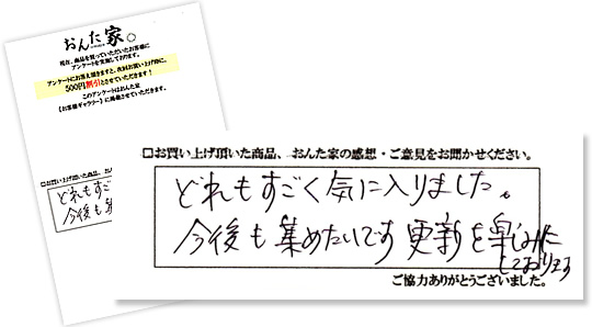 TOP > お客様ギャラリー > K県のN様よりアンケートにご回答頂きました。