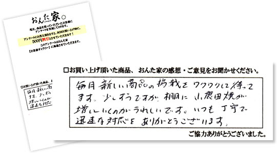 新商品を楽しみにして下さり、スタッフ一同嬉しく思っております。