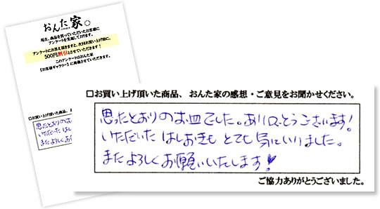 イメージ通りの商品をお届けできたこと、大変嬉しく思います。 なお、他にもメッセージや写真などを随時募集中ですので、