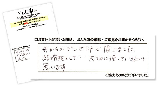 TOP > お客様ギャラリー > N県のK様よりアンケートにご回答頂きました。
