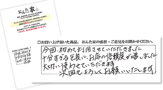 この度は数あるお店の中からおんた家をご利用頂き