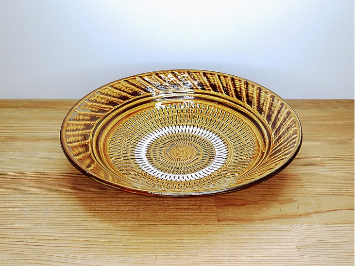 7寸中深皿 飛び鉋と刷毛目 茶