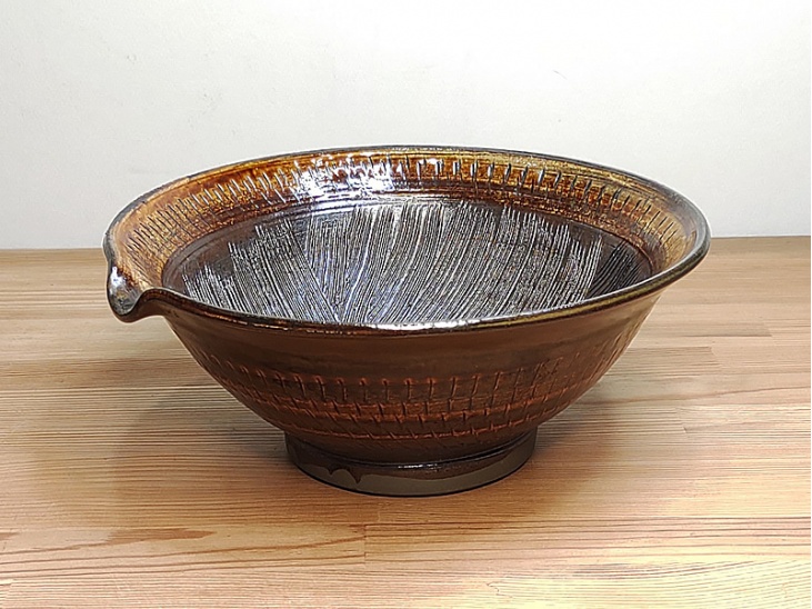 TOP > 片口(すり・小鉢・深皿) > 7寸すり鉢 飛び鉋 飴色