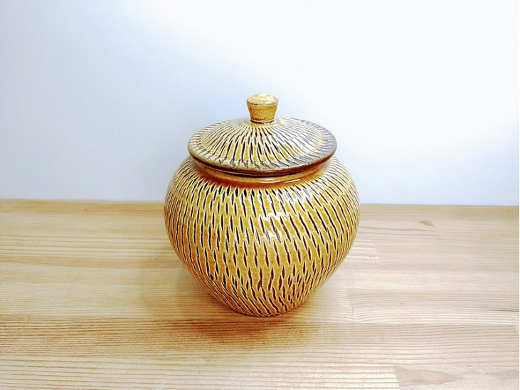 3合壺 飛び鉋(とびかんな)飴色