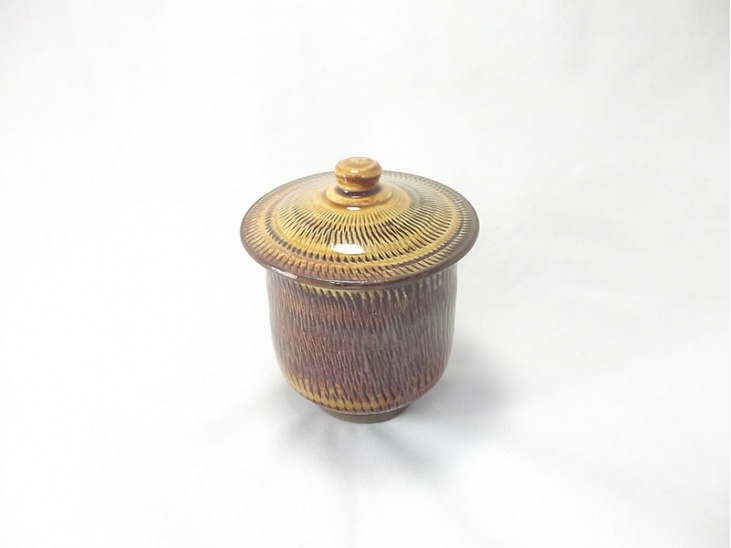 TOP > 茶(湯呑・急須・土瓶) > 【希少】蓋付き湯のみ 飛び鉋(とびかんな)