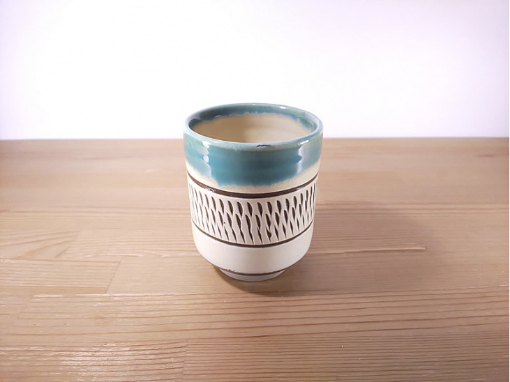 湯のみ フチ緑と飛び鉋(とびかんな)