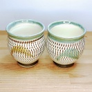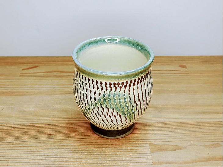 TOP > 茶(湯呑・急須・土瓶) > 湯のみ 飛び鉋(とびかんな)フチ緑 打ち掛け
