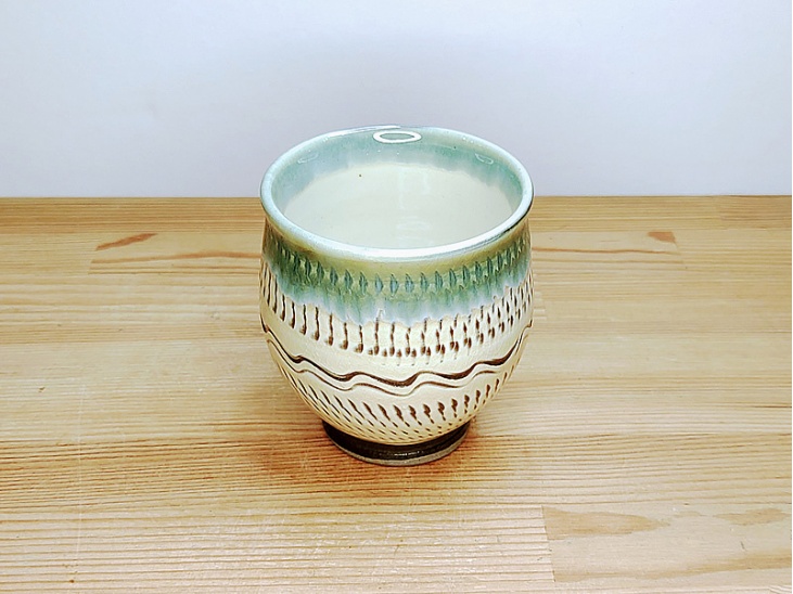 湯のみ 飛び鉋(とびかんな)フチ緑と櫛目