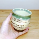 湯のみ 飛び鉋(とびかんな)フチ緑