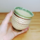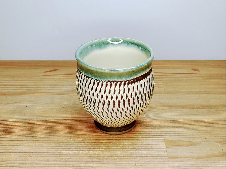 湯のみ 飛び鉋(とびかんな)フチ緑