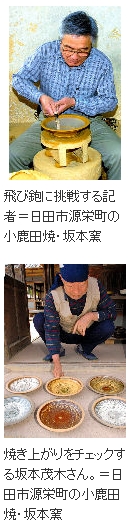 日田市の代表的な伝統工芸、小鹿田(お・ん・た)焼は、素朴な生活雑器の中に独特の味わいがある。その魅力を生み出しているのが、飛び鉋(かんな)の模様だ。細かい溝が連なる独特の模様は、どうやって作られているのだろう。窯元の坂本茂木(しげ・き)さん(72)に弟子入りして、秘密を探ってみた。(園田裕道)