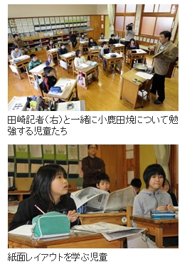 調べた事柄を新聞に載せるため、児童たちは分かりやすく文章にまとめ、イラストを描いた。見出しの付け方や紙面レイアウトを山本康裕記者(39)=大分合同新聞整理部=に教わり、小鹿田焼の魅力を伝える新聞が出来上がった。