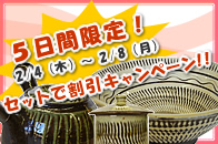 2月4日から8日までの5日間限定で、茶碗や湯のみなどを数個セットにしてお届けします。