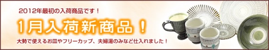 いつもおんた家をご利用いただきありがとうございます。1月23日(月)17時より2012年最初の新商品を販売開始いたしました!お皿や、壷、コーヒーカップといった商品を多数取り揃えておりますのでこの機会にどうぞご購入くださいませ!数に限りがありますので、お急ぎくださいませ。