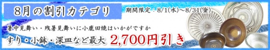 【販売開始しました!】 8月の割引カテゴリ『すり・小鉢・深皿』販売開始のお知らせ