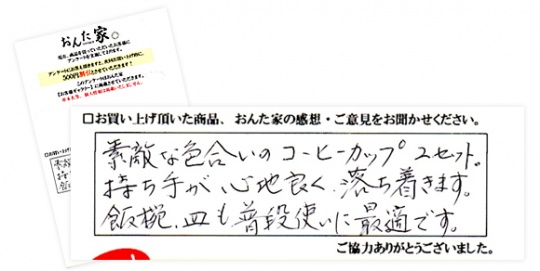 お茶碗やお皿も気に入っていただけたようで大変うれしいです。