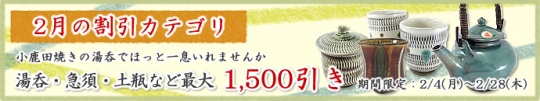【ありがとうございました!】 2月の割引カテゴリ『茶(湯呑・急須・土瓶)』終了のお知らせ