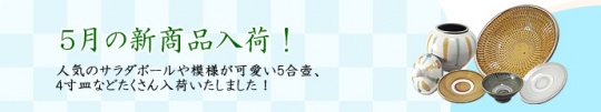 5月16日(金)18時より5月新商品を販売開始致しました!サラダボールや5合壺、4寸皿などたくさん入荷いたしております!