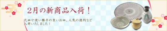 2月4日(木)15時より2月新商品販売開始いたしました!尺皿や使い勝手の良いお皿、人気の徳利など入荷しております!