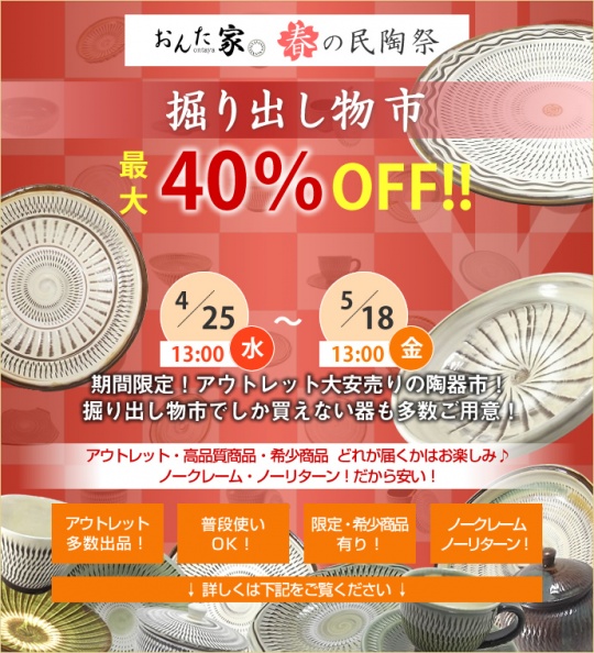 おんた家の陶器市【春の民陶祭】 さらにお安くなりました♪