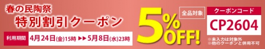 ◆ご注文時にクーポンコードを入力することで商品合計より5%割引となります。